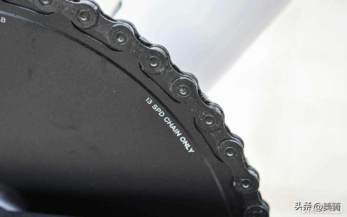 盤片為13速專用,所以VOOK還找速盟定制了13速鏈條,并進(jìn)行了黑化處理,令顏色搭配更加和諧。