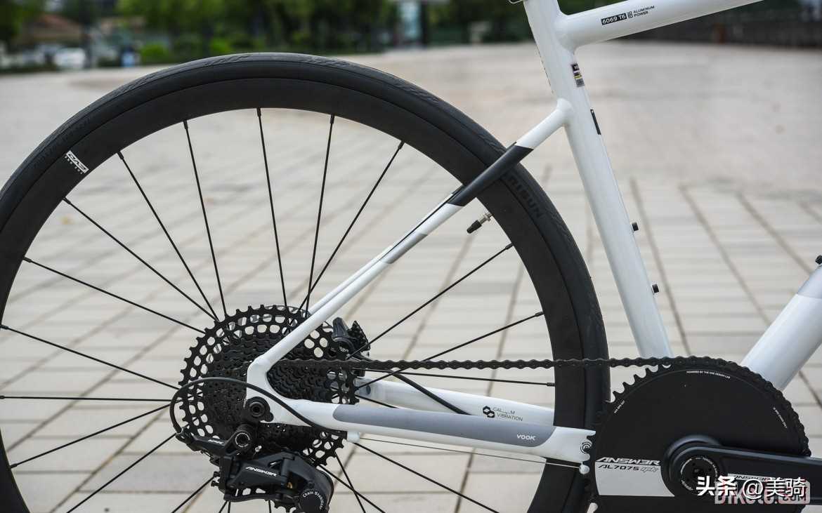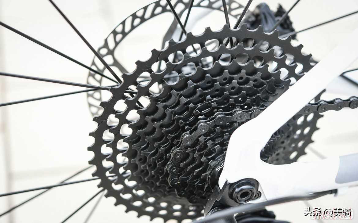 為了讓單盤的齒比也能滿足新手的需求,所以VOOK ONE配備了11-45T的超大飛輪,這在非Gravel定位的公路車上非常少見。VOOK號稱飛輪經(jīng)過鏤空輕量化處理,在有限的成本下,盡可能地降低了重量。