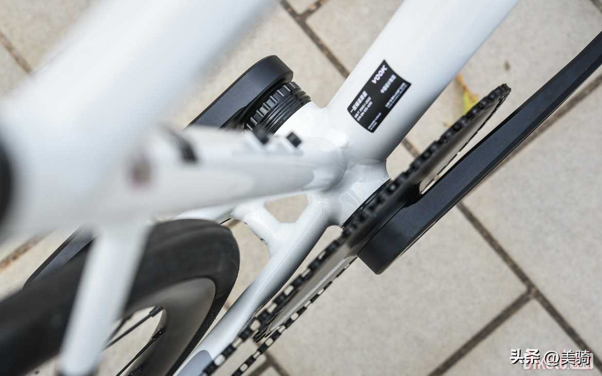 出廠后下叉就已經(jīng)貼好了與車架顏色搭配的護(hù)鏈貼,VOOK在這些小細(xì)節(jié)方面還是比較用心的。
