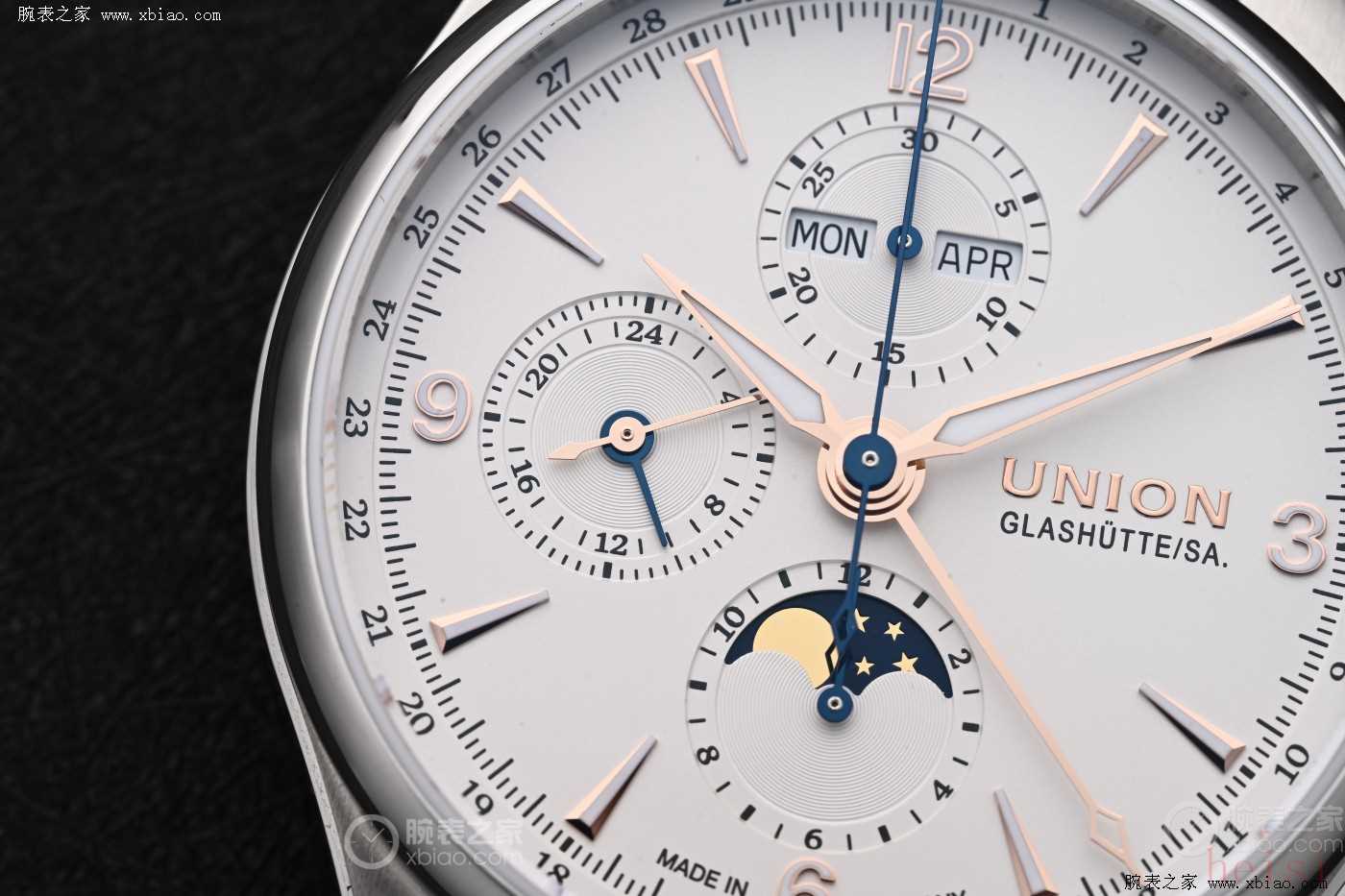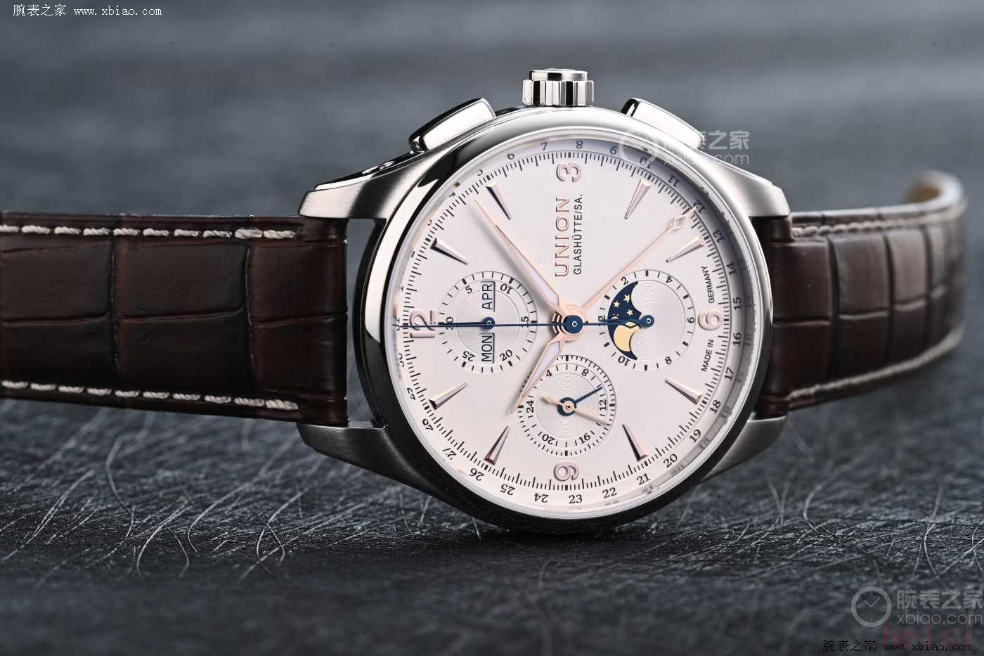 說到性價(jià)比高的德系表,不得不提到宇聯(lián),宇聯(lián)雖然算不上大眾的熱門品牌,但是在腕表圈的口碑可是相當(dāng)不錯(cuò)的。宇聯(lián)(Union Glashütte)成立于1893年瑞士格拉蘇蒂小鎮(zhèn),雖然擁有百年歷史,但是2018年才進(jìn)入中國市場。作為有實(shí)力且低調(diào)的品牌,宇聯(lián)可是出了很多值得購入的表款,不管是從創(chuàng)新還是從機(jī)芯上來看,在同價(jià)位的表款中都是值得關(guān)注的存在。今天呢來和大家分享宇聯(lián)貝利士系列,這只八針月相表可以說是宇聯(lián)正裝表的代表作了,公價(jià)不到3萬元,拿下一只完美的德系正裝表。