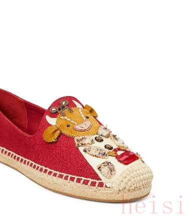 生肖牛同樣成為了鞋履上的主角,本系列中的帆布鞋不僅以生肖牛貼花裝飾,生肖鼠也藏在背后久久不肯告別。帆布鞋采用多重材質(zhì)豐富層次細(xì)節(jié),鞋身采用紅色,鞋底則采用舒適的編織工藝,讓你時(shí)髦而舒心的走上新一年的旅程。