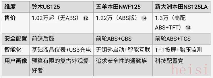 3. 對比競品:US125的“配置短板”如何被放大