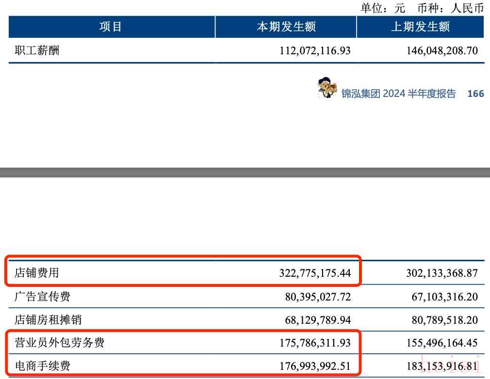 而Teenie Weenie已然扛起集團的營收大旗,成為錦泓的新增長點。2019年到2023年,Teenie Weenie單品牌營收從20億元增至35億元,而在2024年上半年,Teenie Weenie品牌營收已經(jīng)達到16.22億元,貢獻近八成營收(公司總營收20.78億元)。值得一提的是,錦泓集團的銷售費用高企,據(jù)其財報數(shù)據(jù),2024年上半年其銷售費用為10.5億元,占總營收的50.5%。具體拆解開,店鋪費用(3.23億元)、電商手續(xù)費(1.77億元)和營業(yè)員外包勞務費(1.76億元)是花費前三的項目,合計6.76億元,三項占銷售費用的64%。