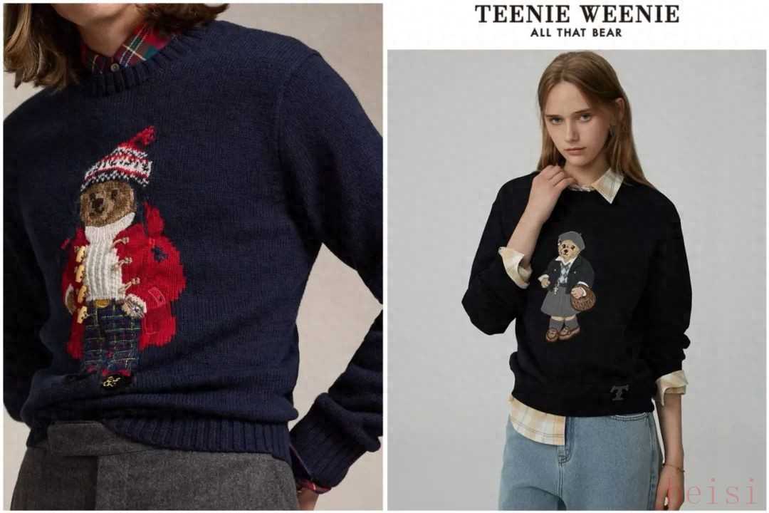 今年,“老錢風”“學院風”再度回春。其中就有代表品牌Ralph Lauren、MIUMIU。根據(jù)Ralph Lauren最新公布的業(yè)績顯示,在奢侈品行業(yè)面臨增長壓力的今年,其第二季度收入增長6%,其中亞洲市場增長超10%。品牌暢銷的爆品仍是Polo衫和針織衫,這兩年中國服裝市場刮起“老錢風”穿搭熱潮,作為該風格代表品牌的Ralph Lauren成了直接受益者?!懂敶髽I(yè)》觀察到,在部分代購群里,Ralph Lauren是熱門品牌,有群代購今年上半年多次前往韓國奧萊采購Ralph Lauren的商品,尤其是經(jīng)典麻花式樣的多色針織衫更成為群里接龍的爆品。同樣的還有MIUMIU。作為“千金風”“學院風”的代表,從一只保齡球包,再到假兩件的“知識分子”開衫,MIUMIU成為了服裝行業(yè)的“經(jīng)典樣板”,在今年持續(xù)爆發(fā)。但動輒四位數(shù)甚至五位數(shù)的價格還是讓消費者縮了手,在奢侈品面前,“平替”的出現(xiàn)解決了一大部分消費者的需要。30多歲的杭州女士安娜在今冬一下入手了兩件Teenie Weenie的服裝,她無意中發(fā)現(xiàn)Teenie Weenie的棒球夾克成了孩子幼兒園老師的統(tǒng)一“制服”,風格上乖巧減齡亦不失潮流感,這讓她對這個兒時印象中的老品牌產(chǎn)生了好奇。她發(fā)現(xiàn),Teenie Weenie服飾的風格依然保持著一貫的“學院派”,但經(jīng)典的牛角扣大衣和小熊衛(wèi)衣已經(jīng)不是其主打品類,取而代之的是小熊絞花針織衫、通勤針織衫。從外觀上,它與Ralph Lauren相類似,但售價卻是后者的近十分之一,因此被諸多消費者稱為Ralph Lauren的“平替”。小紅書上,總有博主將這兩家品牌拿來比較,得到的總結(jié)是“實在太像了”。其中之一就是經(jīng)典的“小熊”IP,兩大品牌都有穿著英倫學院風制服的小熊LOGO,無論配色還是版型,風格的相似度極高,但價格方面卻相差甚遠?!懂敶髽I(yè)》觀察各大平臺發(fā)現(xiàn),Teenie Weenie印有小熊圖案的毛衣、針織衫平均價格約在300元~600元,不算過高的價格,正能滿足向往大牌的大眾消費者心理。