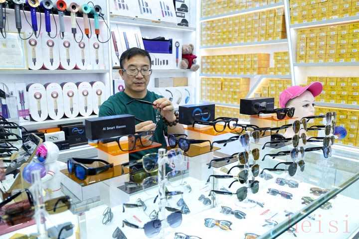 2002年開始在華強(qiáng)北經(jīng)營(yíng)“一米柜臺(tái)”的商戶江小林,今年5月入駐華強(qiáng)電子世界二店?!耙郧敖?jīng)營(yíng)網(wǎng)卡、交換機(jī)、門禁等產(chǎn)品,現(xiàn)在轉(zhuǎn)型做智能眼鏡,創(chuàng)立了RockLion自有品牌,柜臺(tái)擴(kuò)大一倍,增加了體驗(yàn)式消費(fèi)場(chǎng)景,月銷售額可達(dá)200多萬元。”他說,自己的優(yōu)勢(shì)依然是前店后廠,從柜臺(tái)銷售捕捉俏銷產(chǎn)品,背后的工廠迅速生產(chǎn)供應(yīng)。