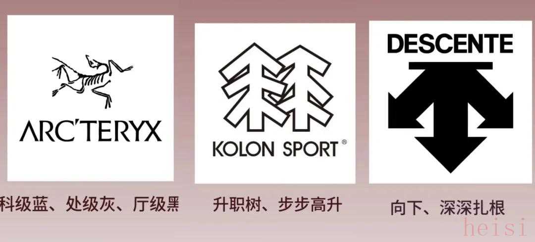 其中,售價(jià)最高的始祖鳥,有著“科級(jí)藍(lán),處級(jí)灰,廳級(jí)黑”一說,啥級(jí)別穿啥顏色一目了然。可隆因?yàn)閘ogo是并排的兩棵樹,形似6個(gè)向上的箭頭,被解讀為“升職樹,步步高升”。迪桑特logo里向下的三個(gè)箭頭,則被理解成“心系群眾,向下扎根”。