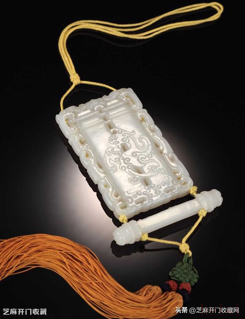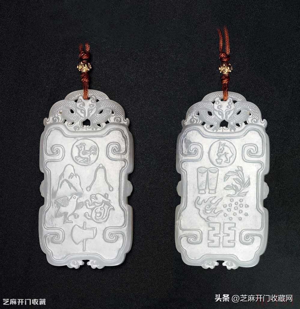 1:清乾隆白玉十二章紋牌,尺寸:長(zhǎng)8.5厘米,估價(jià):RMB 50萬-80萬 ,成交價(jià):RMB690萬