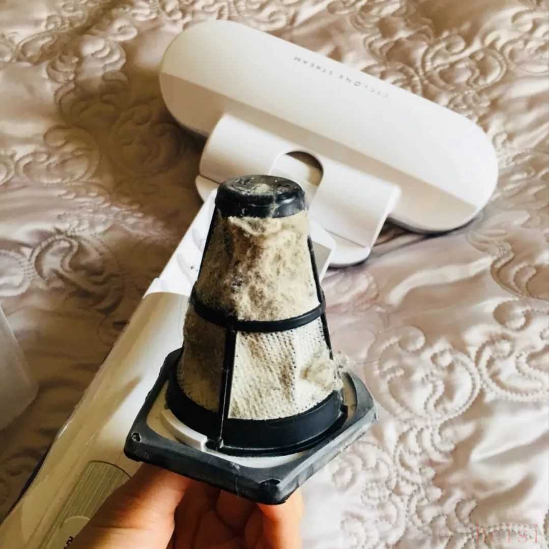 濾網(wǎng)布滿了灰塵和螨蟲尸體,藏在被子里的頭發(fā)、毛絮、皮屑也統(tǒng)統(tǒng)被吸出來,還夾雜著貓毛……