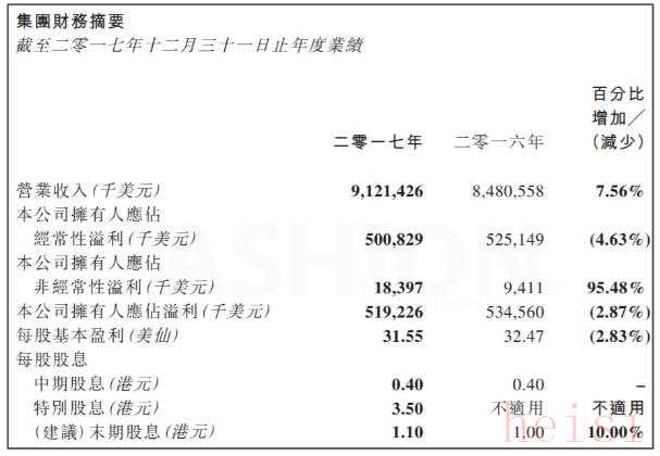 寶勝國際2017年核心盈利數(shù)據(jù)