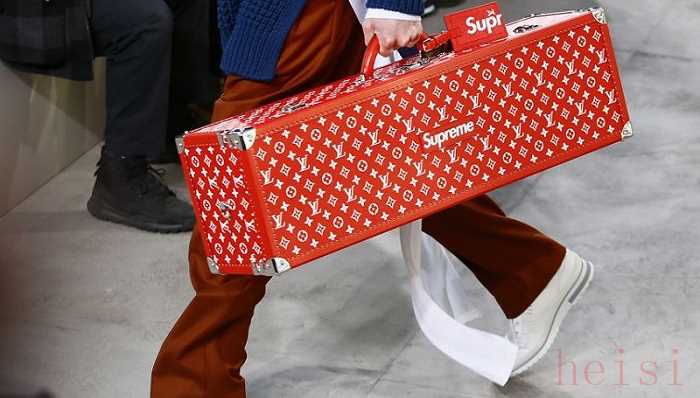 2017年,路易威登與美國潮牌鼻祖Supreme推出了跨界合作聯(lián)名系列,把兩個品牌標志性的logo相結(jié)合,融進該限定系列的配飾和服裝產(chǎn)品當(dāng)中。該限定系列產(chǎn)品一上市就引起消費者瘋搶,部分產(chǎn)品至今仍然是拍賣市場受追捧的藏品。