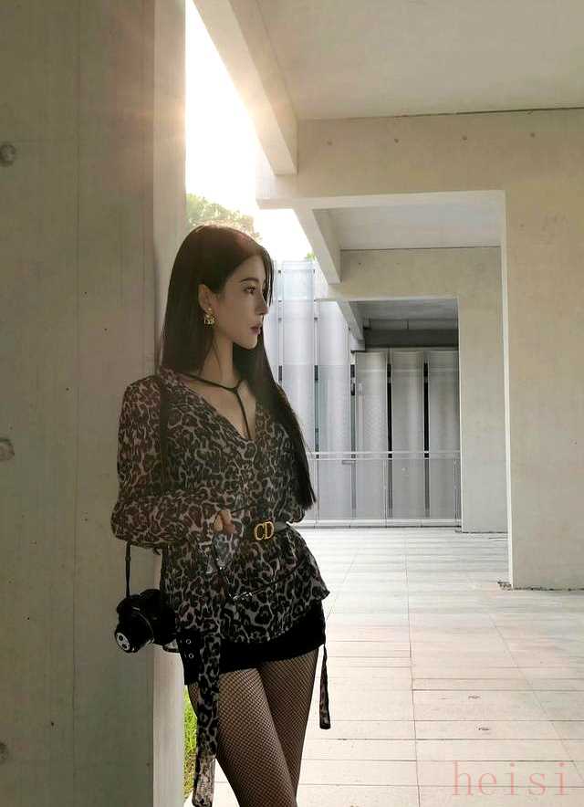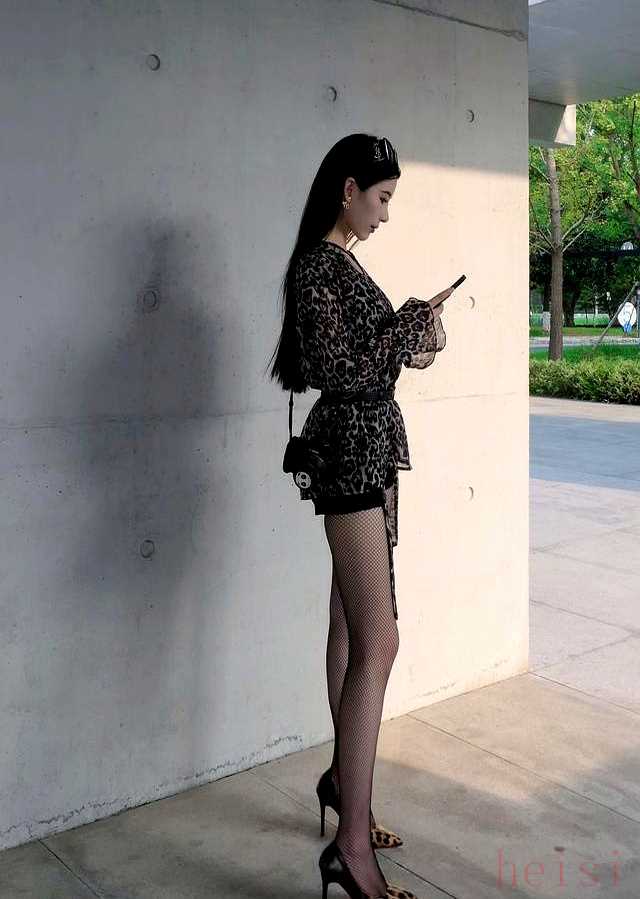 豹紋雪紡上衣+黑腰帶+漁網(wǎng)襪+豹紋高跟,這一套往街上一站,十米開外就知道是誰來了。