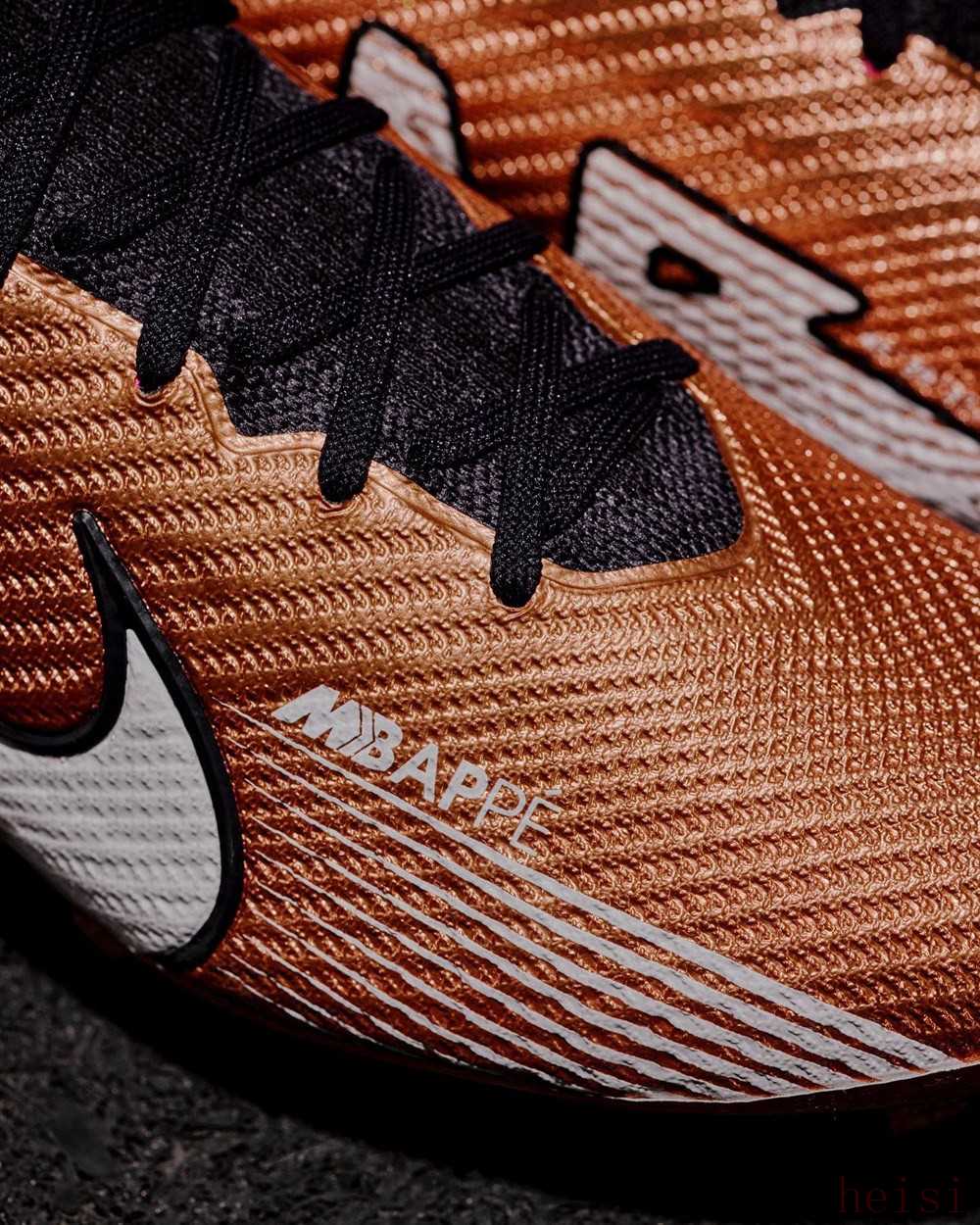 這款新戰(zhàn)靴有著與耐克為世界杯打造的“Generation Pack”套裝相同的金屬銅色外觀,并在大底后跟位置加入代表法國國旗的藍(lán)白紅三色涂層,同時(shí)鞋頭位置帶有融入Mercurial Logo的“MBAPPE”字樣,并且鞋舌標(biāo)簽也改為這位法國球星的名字縮寫“KM”。此外,這款戰(zhàn)靴的鞋墊上也帶有法國國旗圖案。雖然最終姆巴佩未能捧起金杯,但獲得世界杯金靴也讓這款個(gè)人專屬戰(zhàn)靴顯得意義非凡。