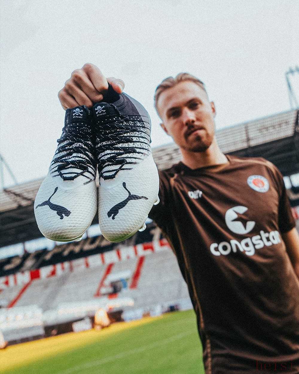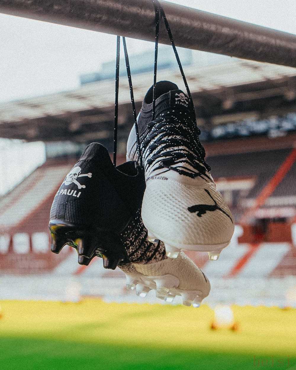 PUMA今年推出了為數(shù)眾多的聯(lián)名足球鞋。在2022年的最后一個(gè)月,德國品牌選擇與本國知名足球裝備零售商11teamsports以及圣寶利足球俱樂部合作推出球隊(duì)專屬限量版FCSP × PUMA FUTURE Z 1.4足球鞋。