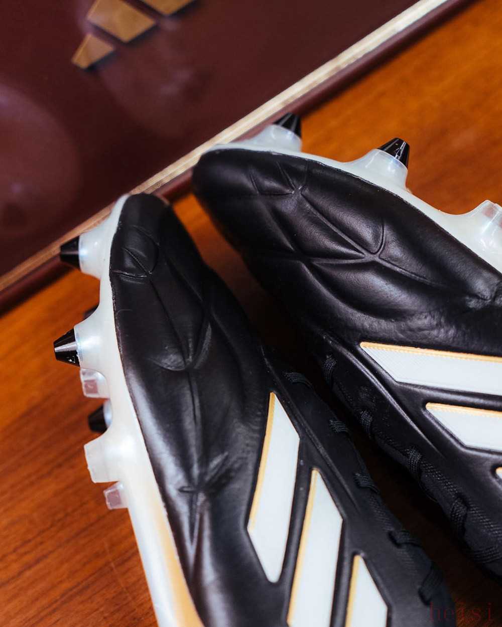 明年即將迎來更新?lián)Q代的adidas Copa足球鞋也在本月率先迎來了預(yù)熱的“Teaser”版本。這便是擁有傳統(tǒng)“黑/白/金”配色的Copa Pure Teaser SG足球鞋。