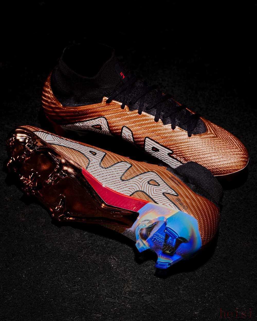 當(dāng)2022年卡塔爾世界杯進(jìn)入到淘汰賽階段后,耐克為法國球星姆巴佩推出了采用特別設(shè)計(jì)的全新個(gè)人專屬Air Zoom Mercurial Superfly 9 KM足球鞋。