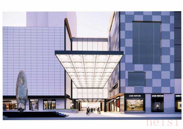 改造完成后,到底會是怎樣的一個全新形象?對此,記者在杭州大廈最新版的調(diào)改方案里找到了答案——以點亮“Lighting on”為設計理念,在商場AB座通道之間,將會有一個發(fā)光的“神秘盒子”,外立面采用深香檳色鋁板,搭配彩釉夾膠玻璃;側面采用深灰和淺灰錯落搭配的棋盤格樣式、整體向外挑空延伸的屋頂??梢哉f,國際消費高地氛圍感拉滿。