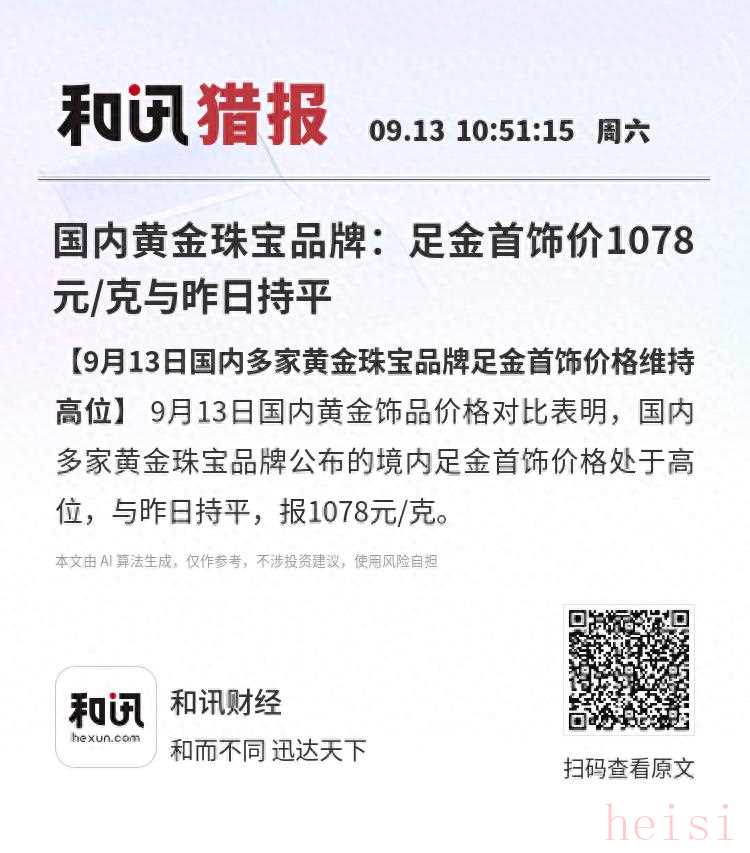 根據(jù)您提供的信息,國內(nèi)某黃金珠寶品牌(請注意,這里沒有指明是哪個具體品牌)的足金首飾價格目前為1078元/克,并且與昨日保持不變。