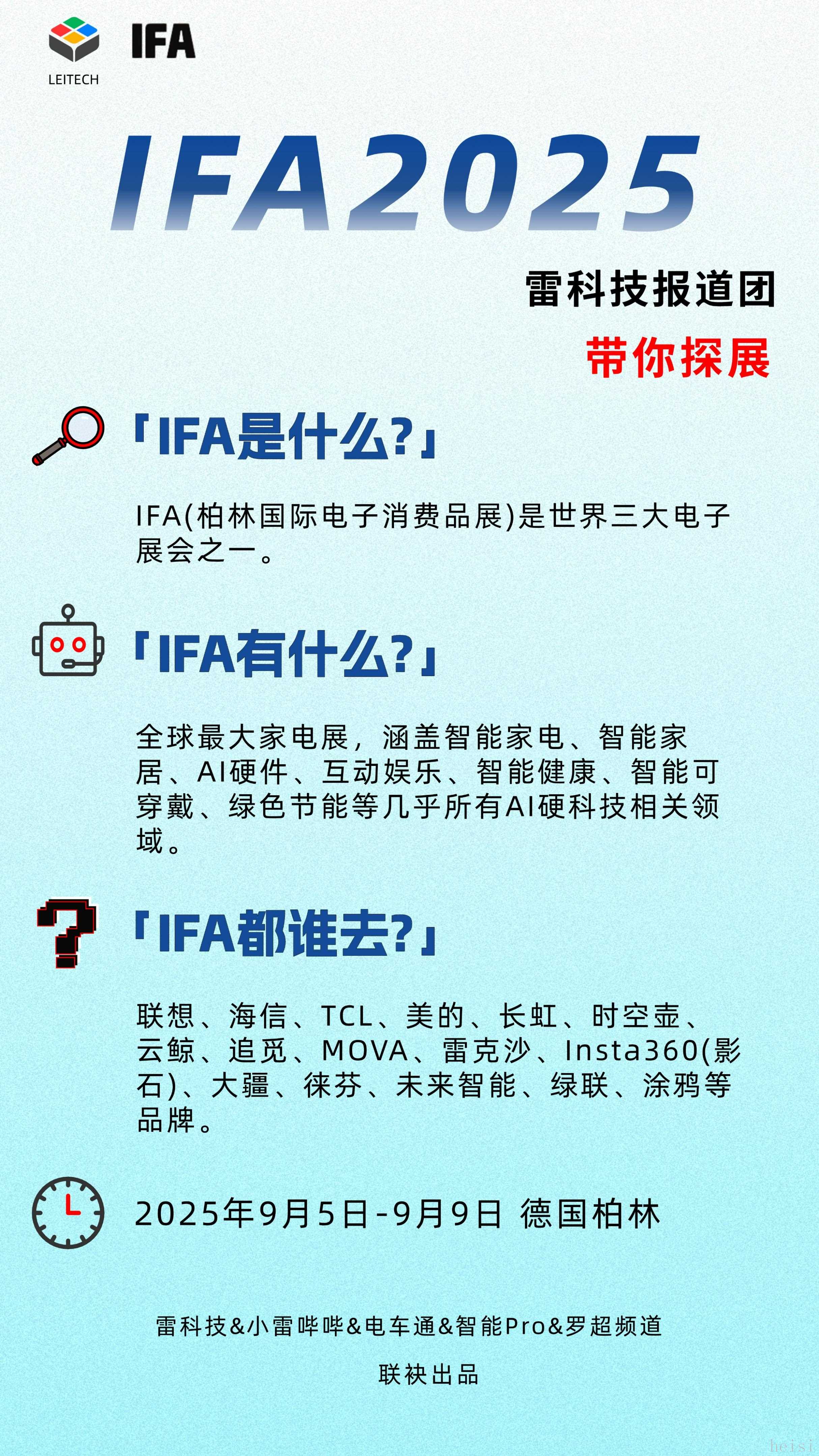 雷科技IFA2025報(bào)道團(tuán)已在現(xiàn)場(chǎng)就位,對(duì)AI硬科技的新趨勢(shì),特別是中國(guó)品牌在世界級(jí)大秀進(jìn)行全程追蹤報(bào)道,敬請(qǐng)關(guān)注!