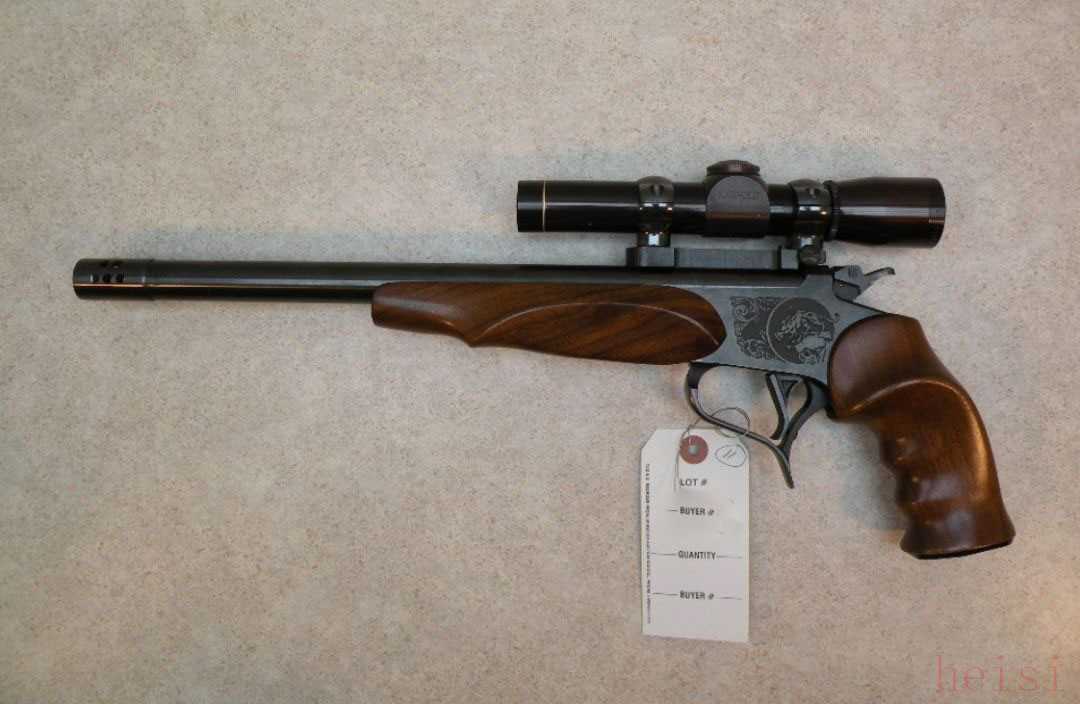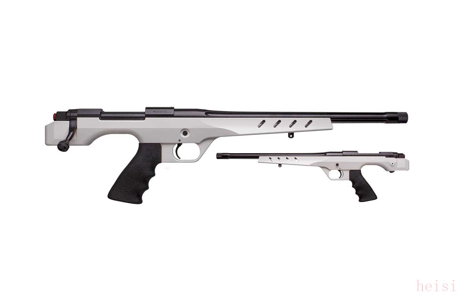 該槍早在1967年,由美國湯普森公司推出,屬于一種單發(fā)手槍,可以發(fā)射點22LR彈藥或5.56×45毫米步槍彈藥,一次只能裝填一發(fā)子彈,裝彈的方式就像雙筒霰彈槍一樣的道理,將槍管打開,從尾部裝點彈藥,雖然這種槍用起來比較麻煩,但是精度高,射程較遠,還可以外加瞄準鏡和槍托,變形為獵槍使用。