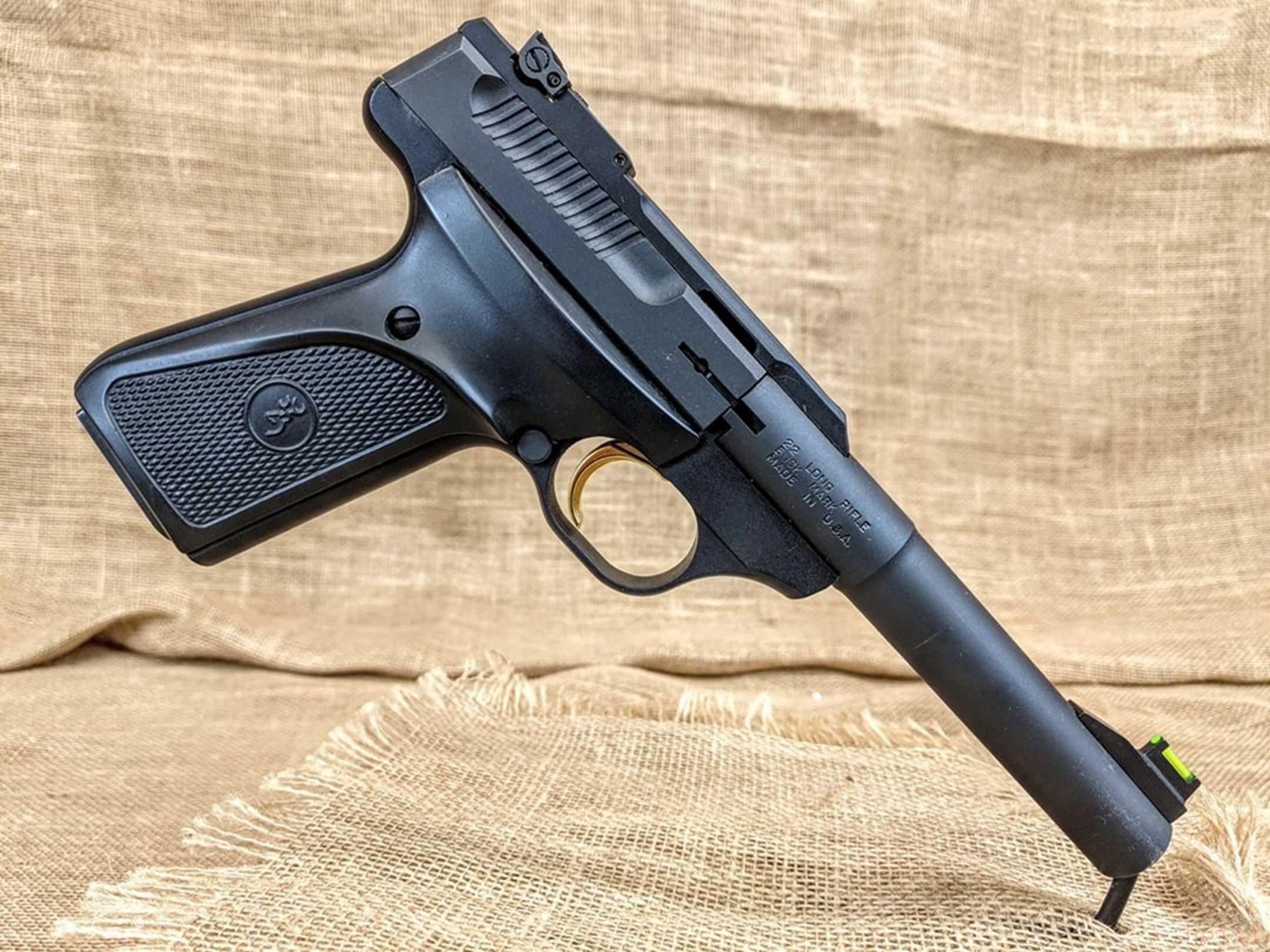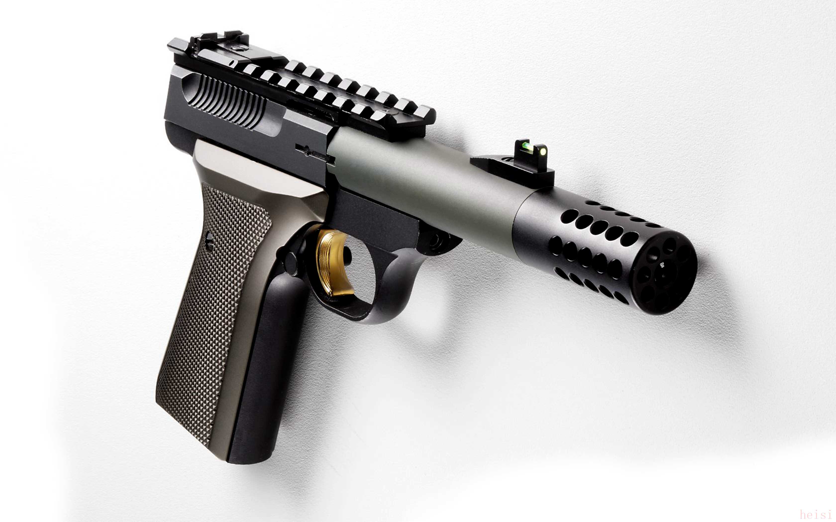 它是勃朗寧系列品牌的運動射擊手槍之一,槍口自帶默認的消音器,還有照門和準星部分都帶有夜光亮片,具備夜間射擊能力,在機匣頂部還帶有一段皮卡汀尼導軌,可根據(jù)射手的使用習慣安裝不同的瞄具。上膛的方式和AR步槍類似,向后拉拽槍機即可完成上膛。該槍可以發(fā)射9毫米彈藥,彈匣容量為13發(fā),它的精度較高,可靠性強,在北美很受歡迎。