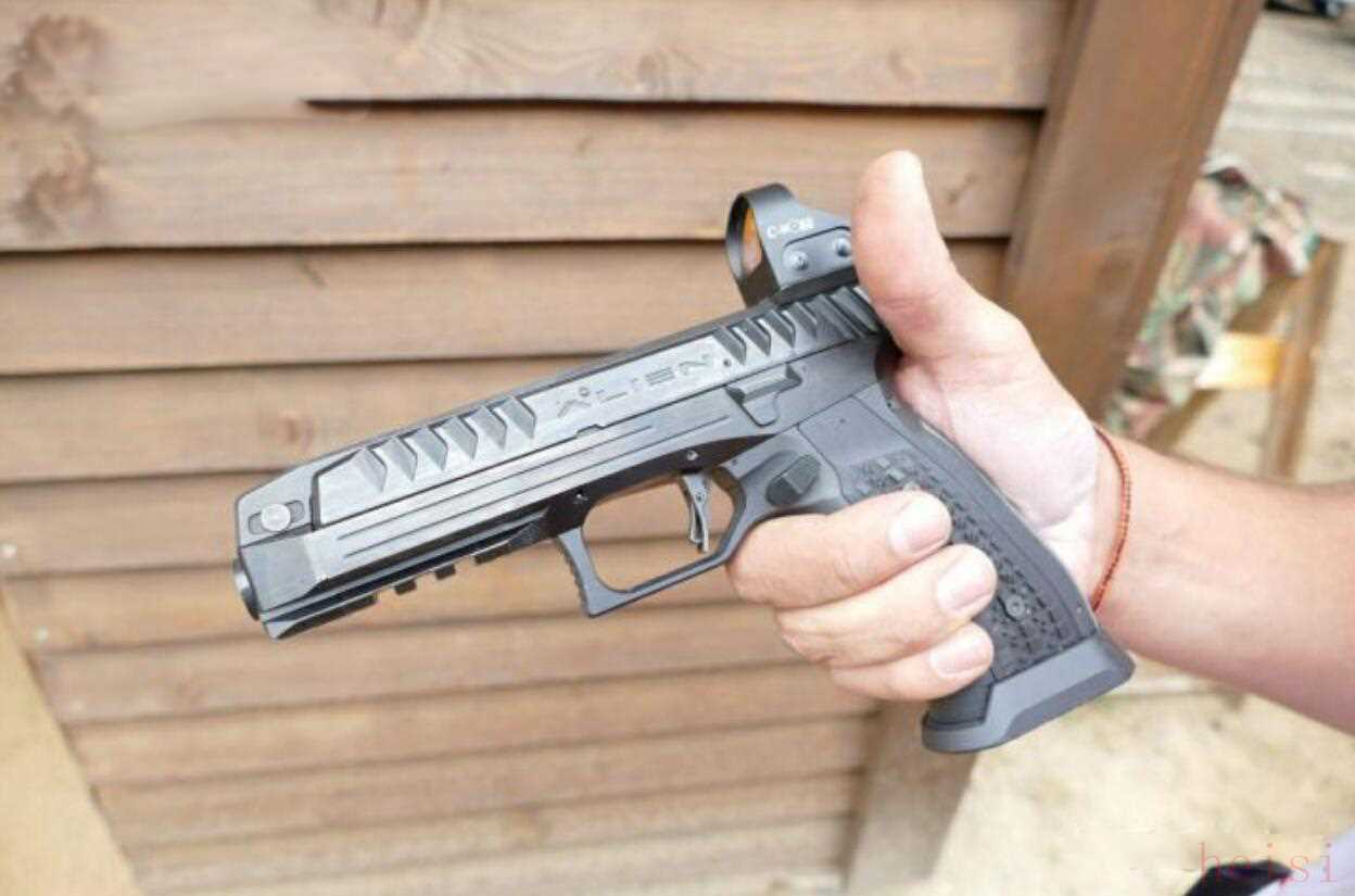 捷克Laugo Arms公司推出的一款全尺寸戰(zhàn)斗手槍,看上去似乎很普通,但是套筒和正常手槍不一樣,上面安裝瞄具的位置,在開火時不會動,而兩側(cè)會前后運動,彈殼也是從側(cè)面退出,使用起來非??苹?,而且該槍沒有默認的準星和照門,要完全依靠瞄準鏡來射擊。它分為點40版本和9毫米版本,彈容量分為15發(fā)、12發(fā)。