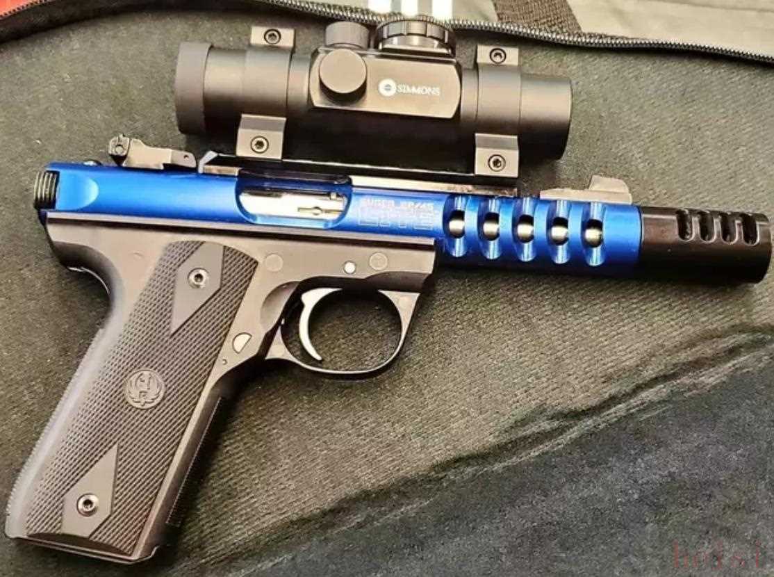 它與上面的那款是同一種類型的運動手槍,但該槍主要發(fā)射點22LR口徑彈藥,槍身采用大量的工程塑料,槍管內(nèi)部自帶消音功能,在北美民間市場,主要作為射擊比賽的運動槍支,因為精度高,可靠性強,多數(shù)的民間射擊比賽,都會選用這支槍。