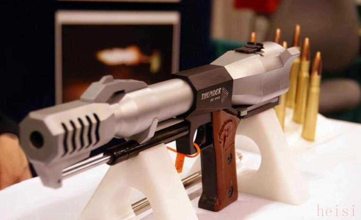 由Triple Action公司在2004年推出的一款獵用手槍,外表看起來就像是麻醉槍,但實際上它非常的另類,發(fā)射點50彈藥,但并不像沙漠之鷹和M500那樣手槍彈,而它發(fā)射的是重型狙擊步槍所采用的點50BMG彈藥,一次只能裝填一發(fā),威力非常大,一槍能射殺一頭犀牛。