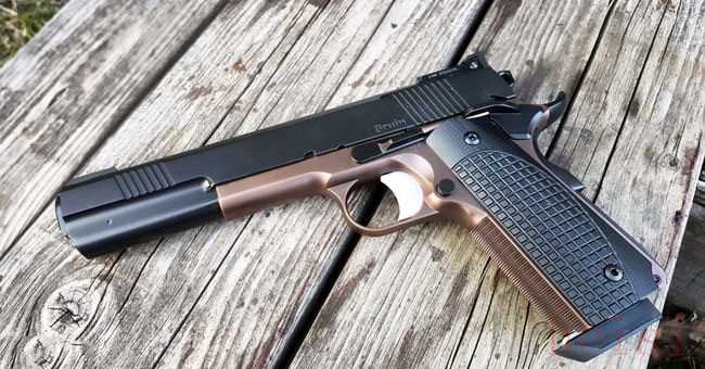 丹·韋森品牌的加長版M1911手槍,雖然有著傳統(tǒng)M1911手槍的基本結(jié)構(gòu),但“棕熊青銅”發(fā)射全新的10毫米Auto彈藥,槍身有著精美的做工,握把部分有細致的防滑顆粒,套筒底座采用青銅顏色,其余部分為黑色,整支槍看起來更美觀,更有顏值。