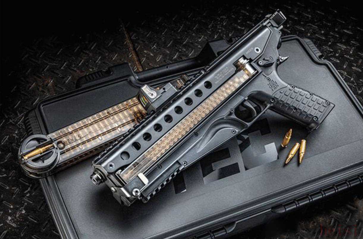 由Kel-Tec武器公司所推出的一款可折疊式卡賓槍,實際上它是根據(jù)PMR30手槍的基礎(chǔ)演變而來,只是延長了槍管,在尾部加裝了一個可收縮式槍托,當完全折疊后,尺寸就像一個13寸的平板電腦一樣大。并且全槍身采用了工程塑料,重量非常輕。它與手槍是同樣的供彈方式,在握把上可插入一個30發(fā)彈匣,發(fā)射點22WMR彈藥,有的型號只能半自動射擊,則加強版可以全自動射擊。