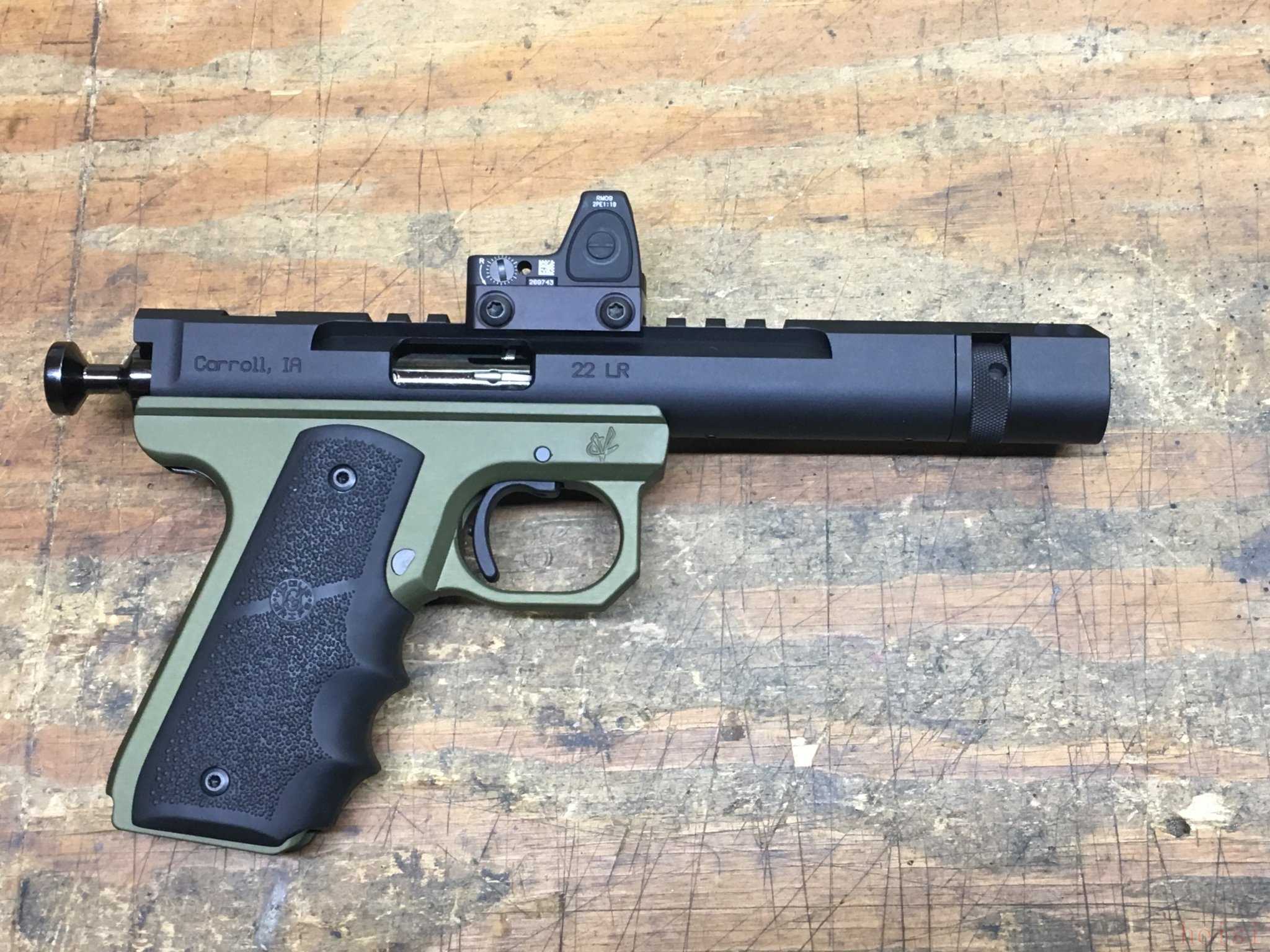 Volquartsen Firearms旗下的運動型手槍,作為西方民間射擊比賽的專用槍之一,自身具備消音能力,槍機位于套筒后部,直接向后拉拽就可完成上膛。發(fā)射點22LR彈藥,彈匣容量為12發(fā),槍身大部分采用了工程塑料,握把部分帶有橡膠軟性防滑護柄,用起來有很強的手感,并在不同的使用情況中,還可以安裝瞄準鏡等配件。