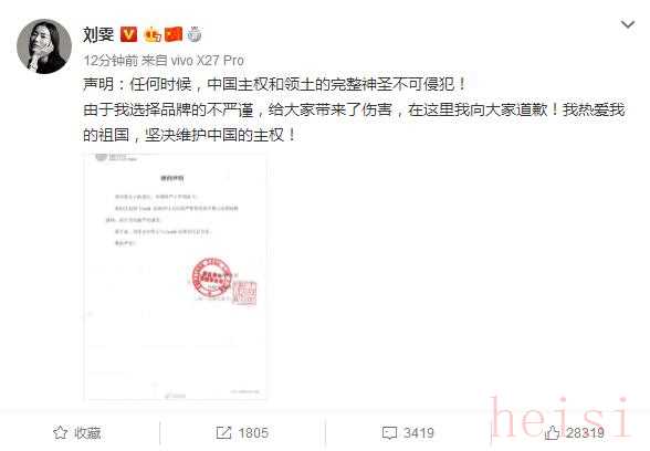 剛剛,蔻馳中國區(qū)品牌代言人、超模劉雯在微博上就此發(fā)表聲明。她說:“由于我選擇品牌的不嚴(yán)謹(jǐn),給大家?guī)砹藗?,在這里我向大家道歉!”聲明還說:“任何時(shí)候,中國主權(quán)和領(lǐng)土的完整神圣不可侵犯!”