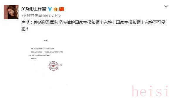 "Statement:" Guan Xiaotong, a prominent Chinese actress, was reported to have commented on the situation.