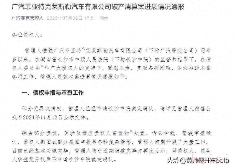過程還是比較曲折的,從2023年3月,就已經(jīng)要給廣汽菲克申請破產(chǎn)了。