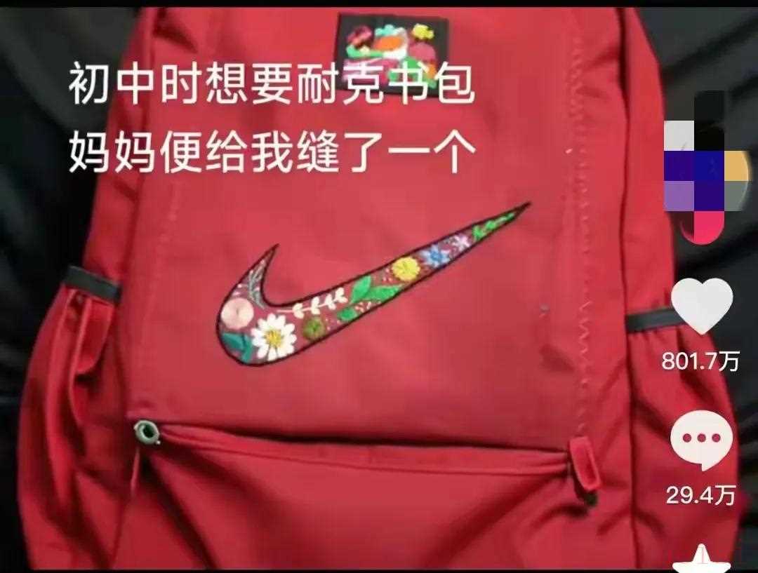 甘肅天水的劉先生,如今在陜西打工,幾天前,他在短視頻平臺(tái)分享了一只舊書包,那是他初中時(shí)媽媽用針線一針一針給他縫出耐克標(biāo)志的背包。