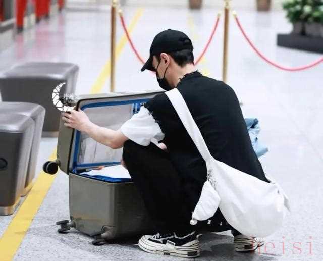 粉絲拍到的生圖里,包帶勒得通紅,他還側(cè)著身子找鏡頭。