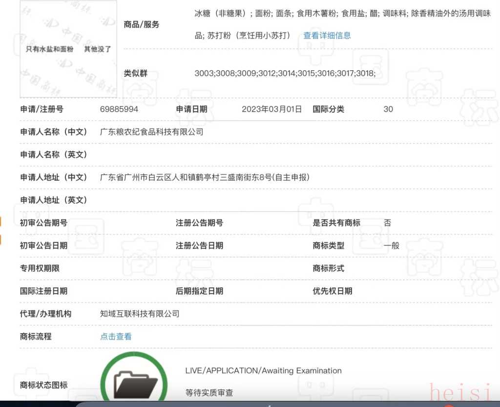 “只有鹽和面粉 其他沒了”商標(biāo)