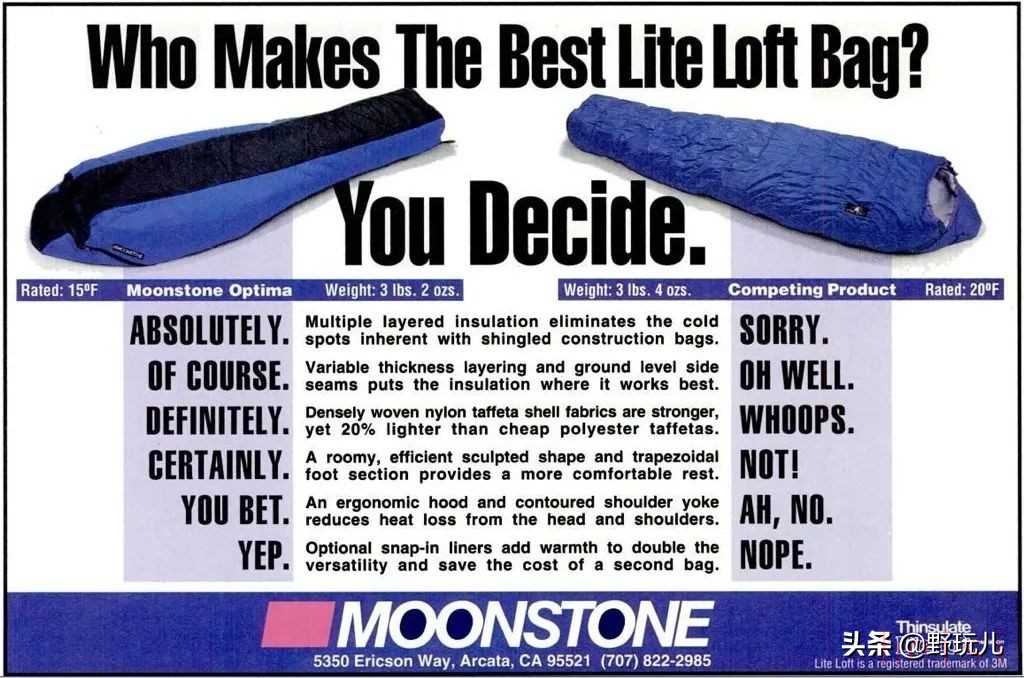 ▲Moonstone是一家曾經(jīng)在睡袋和功能性服裝領(lǐng)域頗有建樹的美國小眾傳奇品牌,后期曾被多次轉(zhuǎn)手。