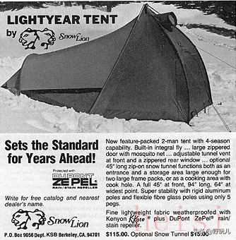 ▲Snow Lion早期的知名帳篷產(chǎn)品Lightyear。