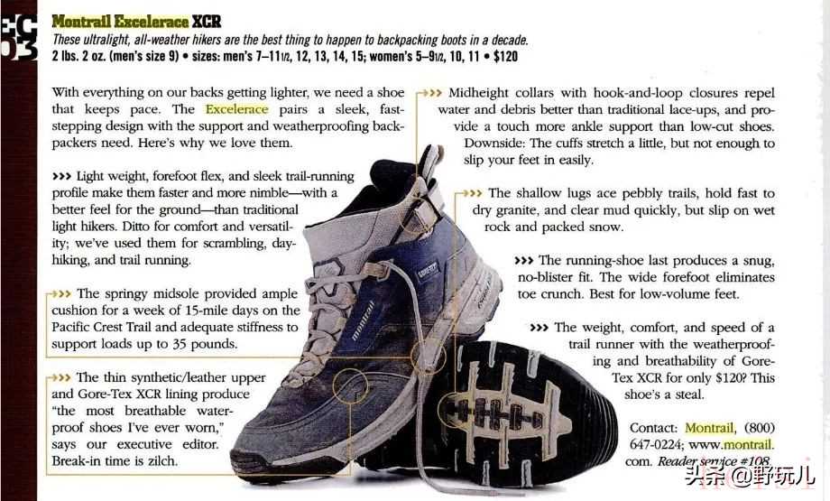 ▲1997年成立伊始,Montrail徒步鞋Moraine被《Backpacker》雜志評為“最佳徒步鞋”。