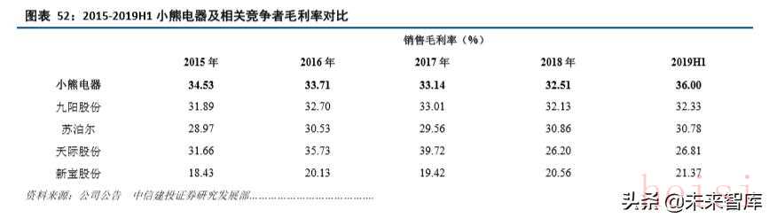 3、毛利率比較: 小熊毛利率維持高位,盈利能力領(lǐng)先
