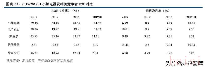5、ROE 對(duì)比:小熊電器遙遙領(lǐng)先,銷售凈利率逐年向好。