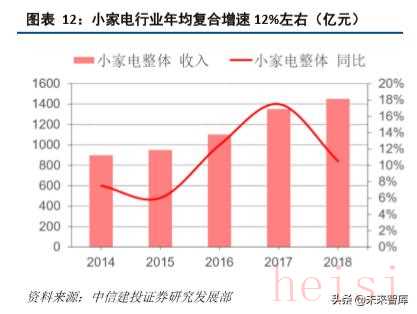 從產(chǎn)品特性看,小家電產(chǎn)品更換周期短、單價(jià)低,相比其他家電產(chǎn)品更具備消費(fèi)品屬性,受地產(chǎn)因素影響 較弱,在地產(chǎn)周期走弱甚至經(jīng)濟(jì)趨緩的背景下,具備一定的防御屬性。小家電行業(yè)增速過(guò)去幾年一直維持在 7-12%之間,屬于家電行業(yè)中最穩(wěn)健的子行業(yè)。