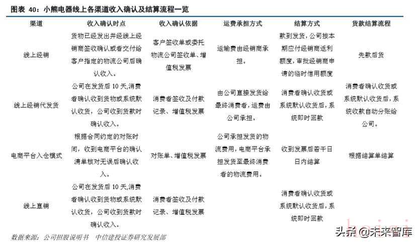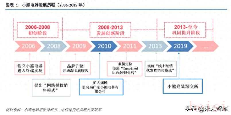 2013 年,公司進(jìn)入優(yōu)化發(fā)展期,推出“線上經(jīng)銷代發(fā)貨銷售模式”,幫助經(jīng)銷商減輕資金壓力和運(yùn)營(yíng)成本, 讓其集中精力銷售優(yōu)勢(shì)產(chǎn)品,同時(shí)成功解決傳統(tǒng)經(jīng)銷模式下小眾產(chǎn)品推廣不足的痛點(diǎn)。在銷售體系逐步搭建完 成后,公司繼而推動(dòng)升級(jí)品牌及技術(shù)研發(fā)體系。在此階段小熊建立了鮮明的品牌形象,研發(fā)設(shè)計(jì)、生產(chǎn)工藝及 質(zhì)量管理得到夯實(shí)完善。