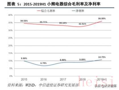 2015-2018 年小熊電器歸母凈利潤(rùn)由 0.72 億元穩(wěn)步提升至 1.86 億元,其中 2017 年在行業(yè)競(jìng)爭(zhēng)者普遍出現(xiàn)下 降趨勢(shì)的市場(chǎng)條件下實(shí)現(xiàn)了同比 104.88%的高速增長(zhǎng);2019H1 達(dá)到 1.28 億元,增幅達(dá) 51.11%,位列行業(yè)前端。 天際股份 2015 年歸母凈利潤(rùn) 0.60 億元,與小熊電器位數(shù)于相同梯隊(duì),但 2015-2018 年的多次波動(dòng)導(dǎo)致其歸母凈 利潤(rùn)絕對(duì)增幅較小,僅上升至 0.84 億元;2019H1 受益于業(yè)績(jī)補(bǔ)償股份,公司凈利潤(rùn)增至 3.04 億元。