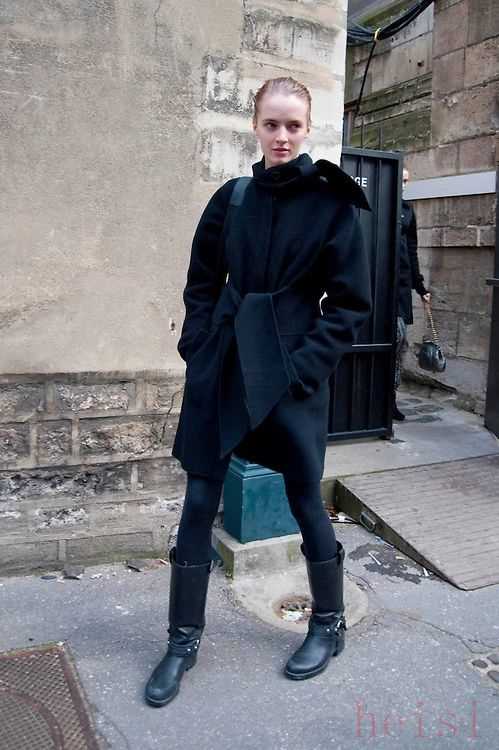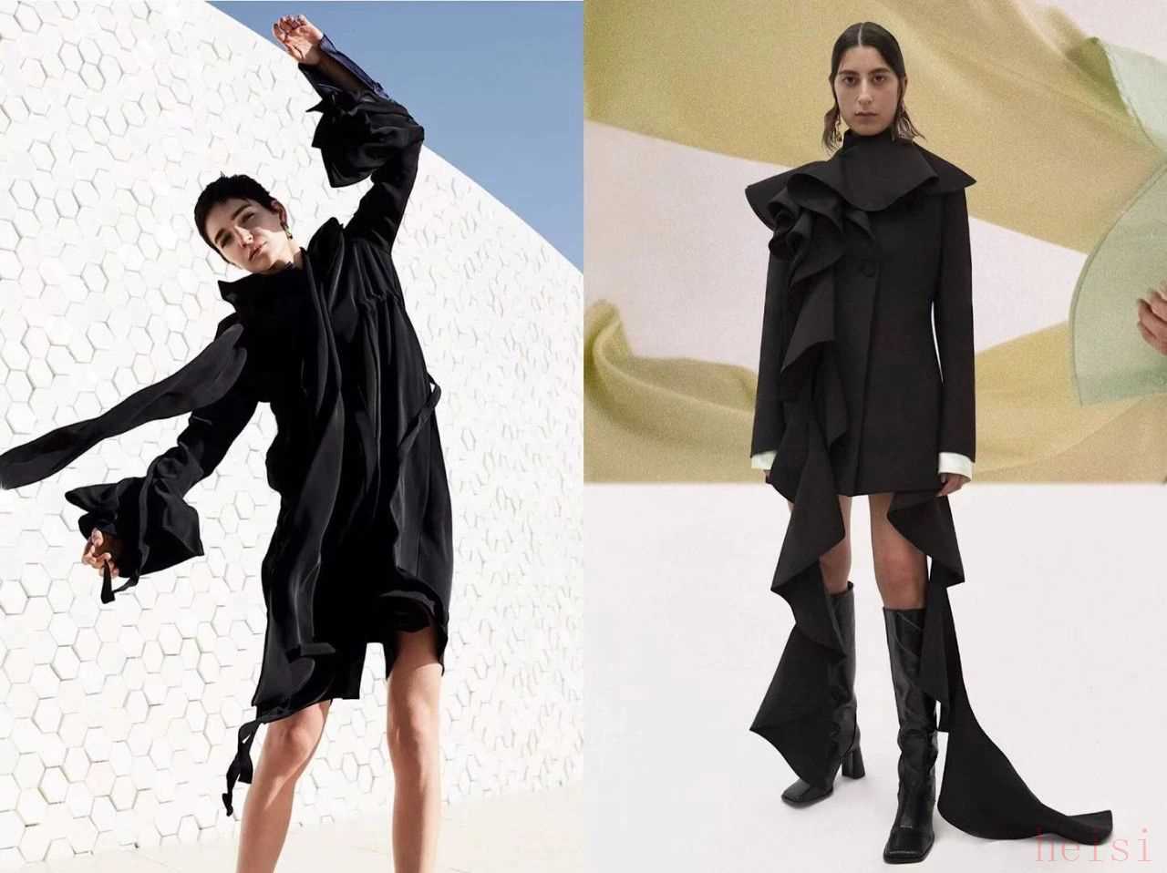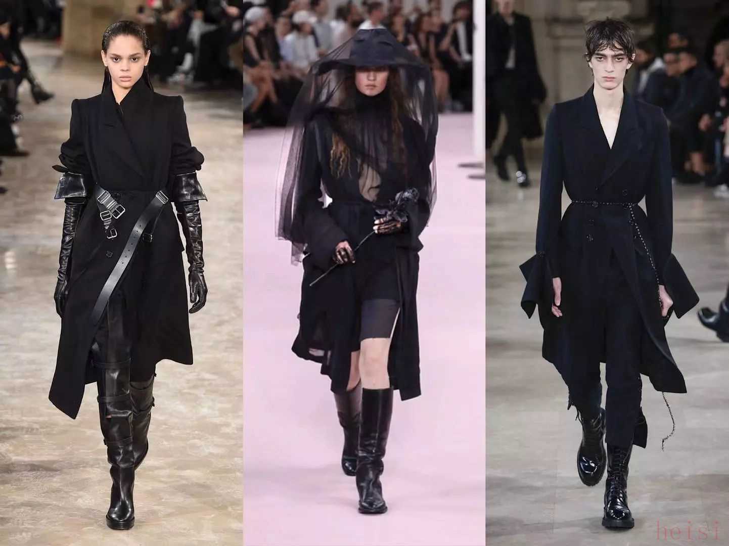 作為一個暗黑品牌,它的畫風(fēng)是這樣的,一身黑加上硬挺的不過膝長靴,酷炫狂拽。設(shè)計(jì)師Ann的不規(guī)則理論聞名時(shí)裝圈,她的設(shè)計(jì)色彩單一但是設(shè)計(jì)是立體的,她用皮質(zhì)、呢子、薄紗,串珠等各種材質(zhì)來完成一個立體的作品,即使只使用黑色這一顏色卻毫不單調(diào),設(shè)計(jì)感都在細(xì)節(jié)之處,精細(xì)而不繁復(fù)。你要圍著前后左右看,就像欣賞雕塑。