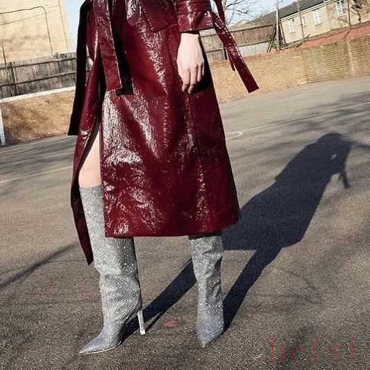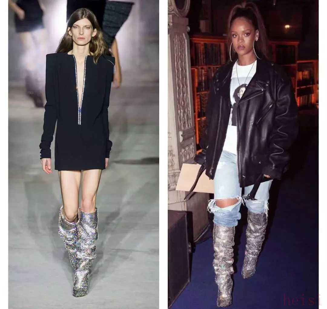 還有這雙帶貨天后Rihanna認(rèn)證的slp不過膝滿鉆長靴,無論是秀場這樣光腿穿或是日日這樣配破洞牛仔褲,時(shí)尚感都是滿分。