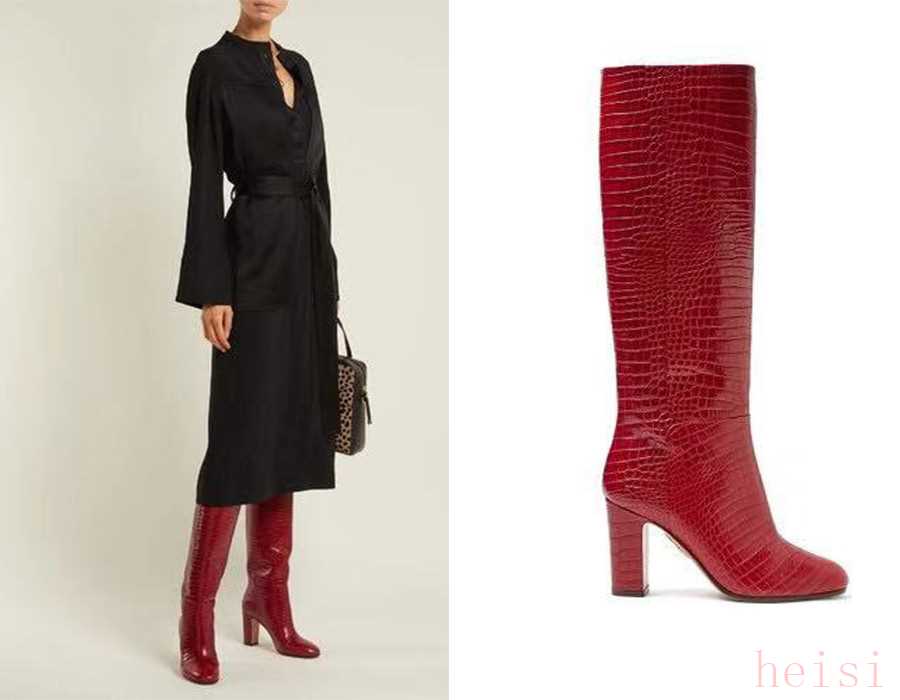 博主上身的這雙墨綠色鱷魚紋Brera boots搭配過膝開衩皮裙,真的很美,顯得人比例超好。