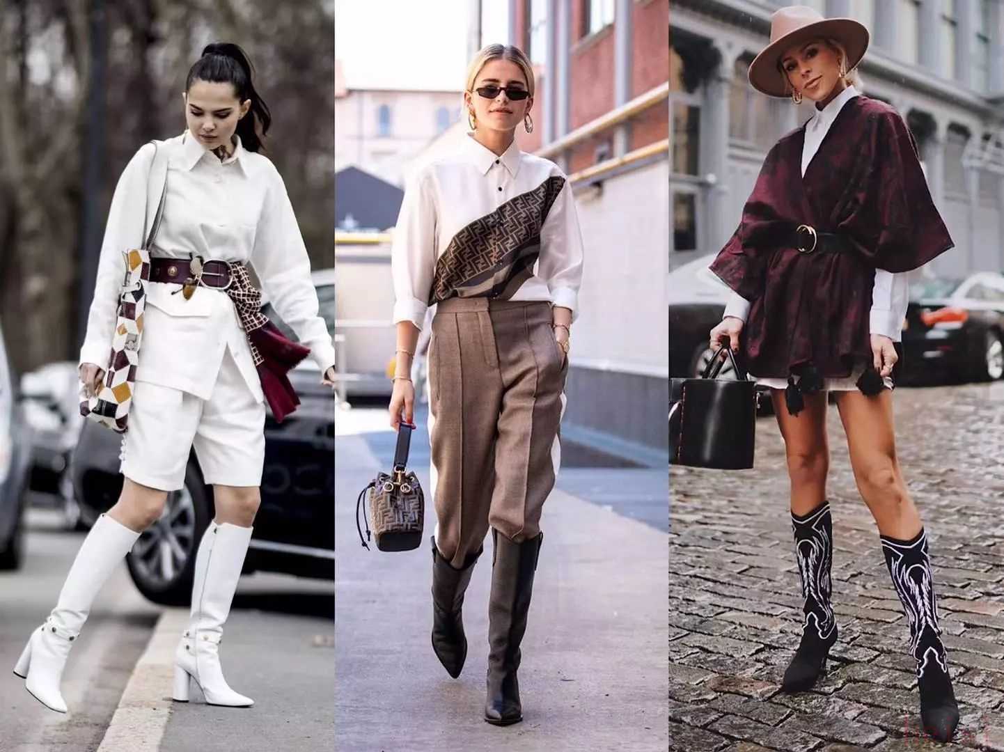 街拍達(dá)人們更是紛紛穿它上街,搭配短褲、短裙、長西褲,簡直是不過膝長靴搭配大全。