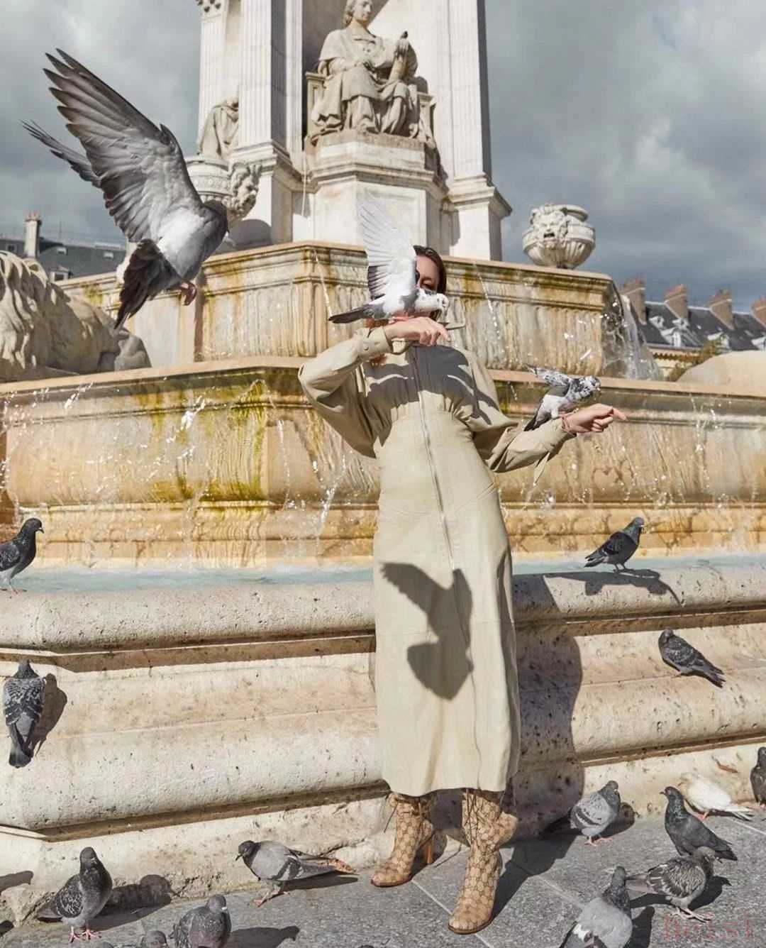 用同色系皮質(zhì)長裙配上這雙靴子,雖然看不到鞋的全貌,但是真的讓人很好奇,她到底穿的是什么鞋?回頭率爆表。