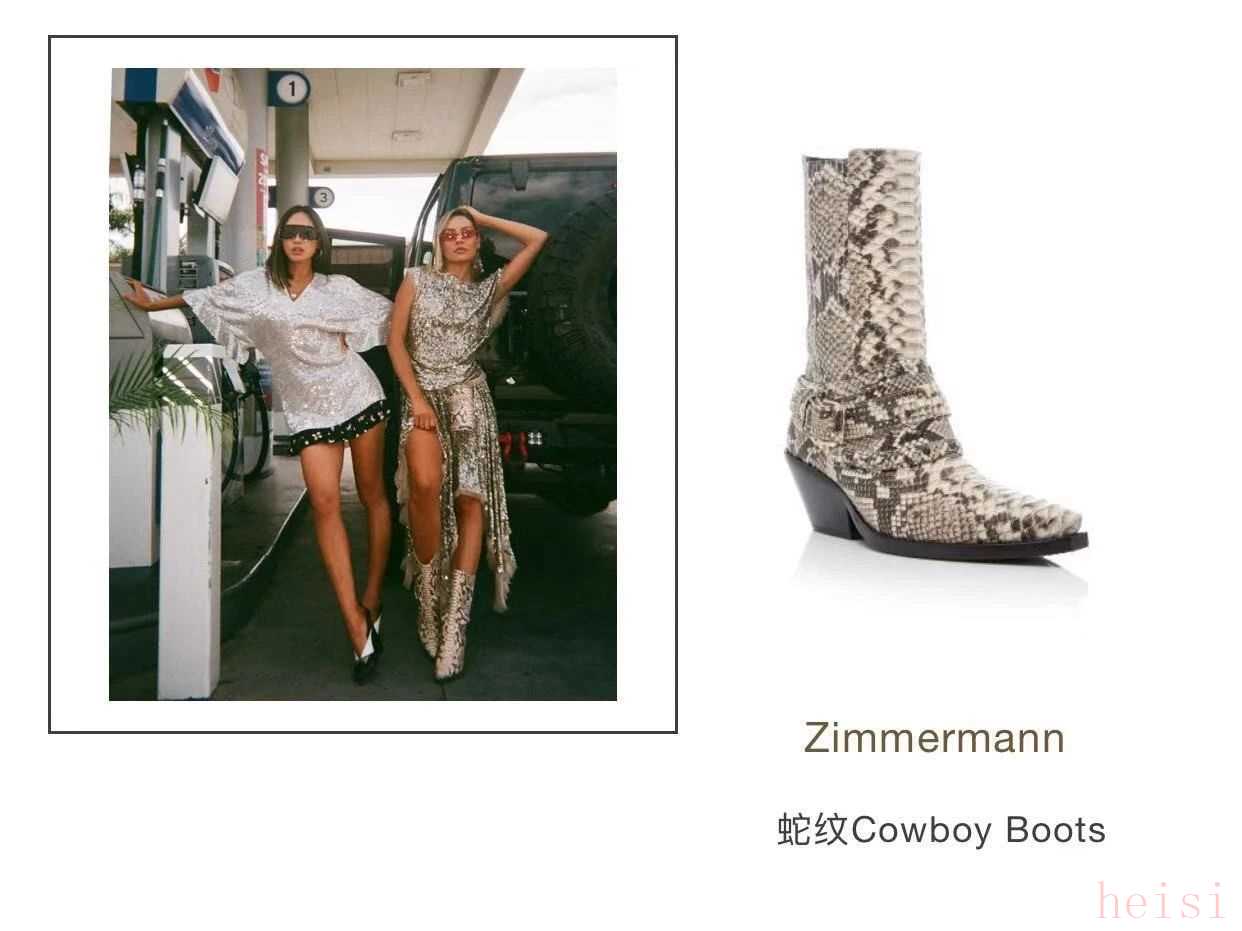尤其是這雙蛇皮高靴十分引人注目,時(shí)尚博主Aimee Song在dress up自己的朋友時(shí)就用到了Zimermann這雙中長靴,蛇皮與兩片這兩種華麗的材質(zhì)才一起竟然意外得一點(diǎn)都不覺得too much。
